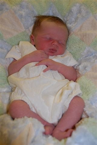 He's here! He came yesterday at 12:52 and weighed 7 lbs 6 oz. I was pretty much in labor all night at home and then got to the hospital around nine in the morning and out he came...I was sorta hoping to get a nap after my epidural before it all went down....but he was ready to come out. He's a sweetheart.